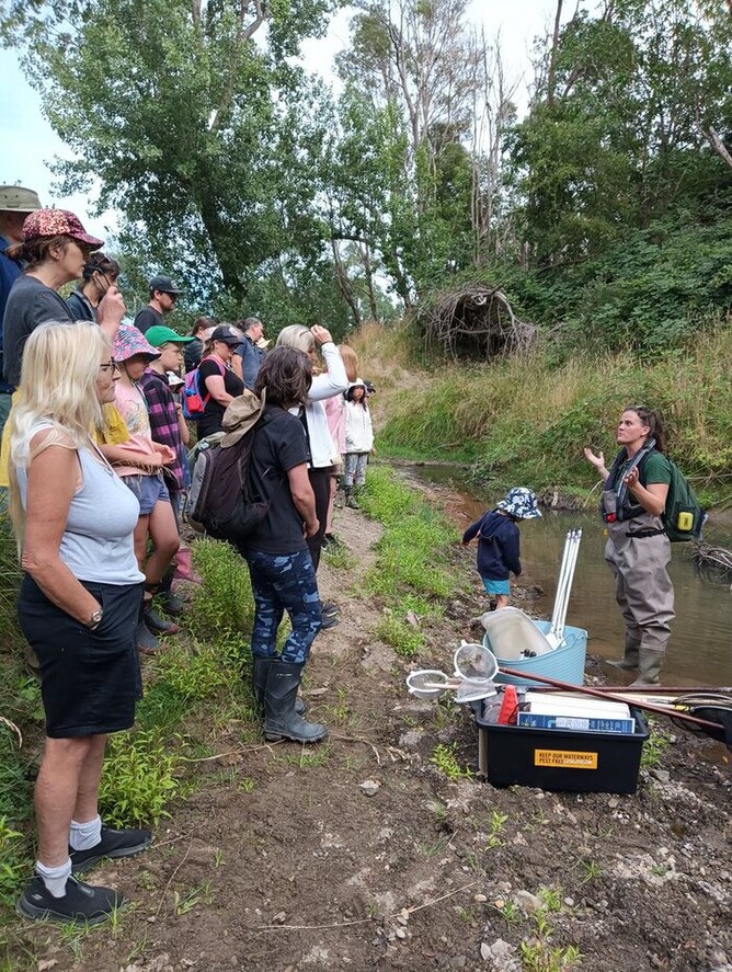 Wairarapa Catchment Coordinator Maddy talking with the group at Mangapokia Stream.